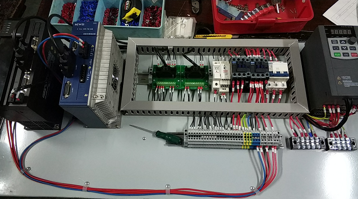 調(diào)直切斷機系統(tǒng)用到了電子凸輪運動功能,主流系統(tǒng)控制方案為觸摸屏、運動控制器、送料伺服、飛剪伺服。 科威智能伺服集伺服驅(qū)動、PLC控制、運動控制于一體,正好適用于調(diào)直切斷機系統(tǒng)。科威智能伺服調(diào)直切斷機系統(tǒng)方案為觸摸屏、飛剪智能伺服、送料智能伺服。